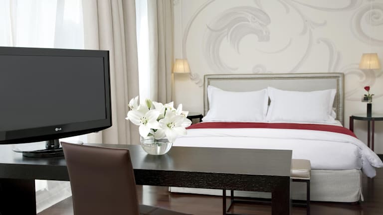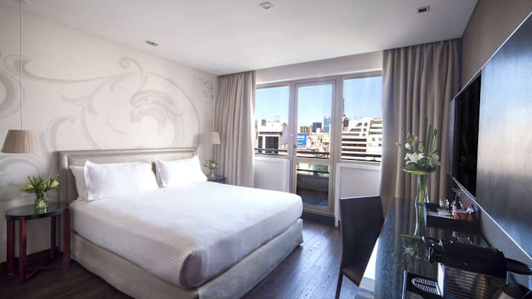 Das NH Tango Hotel bietet elegante Zimmer mit einer warmen Atmosphäre und modernem Dekor. Jedes Zimmer ist mit Annehmlichkeiten wie WLAN-Zugang, einer Minibar, Kabel-TV, einem Safe, einem Telefon, Klimaanlage und Heizung ausgestattet. Die Zimmer bieten zudem einen herrlichen Panoramablick auf die Stadt.