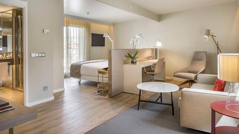 Die Zimmer sind modern eingerichtet und bieten eine Nespresso-Kaffeemaschine, einen großen Schreibtisch, eine Minibar sowie kostenfreies Highspeed-WLAN. Jedes Zimmer beinhaltet ein eigenes Bad mit einem Haartrockner, Kosmetikspiegel und kostenlosen Pflegeprodukten. Es sind sowohl Nichtraucher- als auch Raucherzimmer verfügbar, und einige Zimmer sind rollstuhlgerecht.