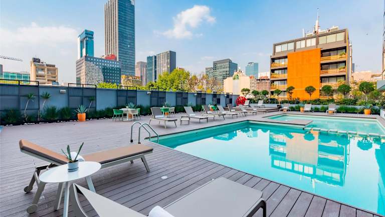 Das NH Collection Mexico City Reforma verfügt über einen Außenpool, in dem Sie sich erfrischen und entspannen können. Auf der Sonnenterrasse können Sie die warmen Sonnenstrahlen genießen. Das Hotel bietet auch ein Fitnessstudio für sportliche Aktivitäten.