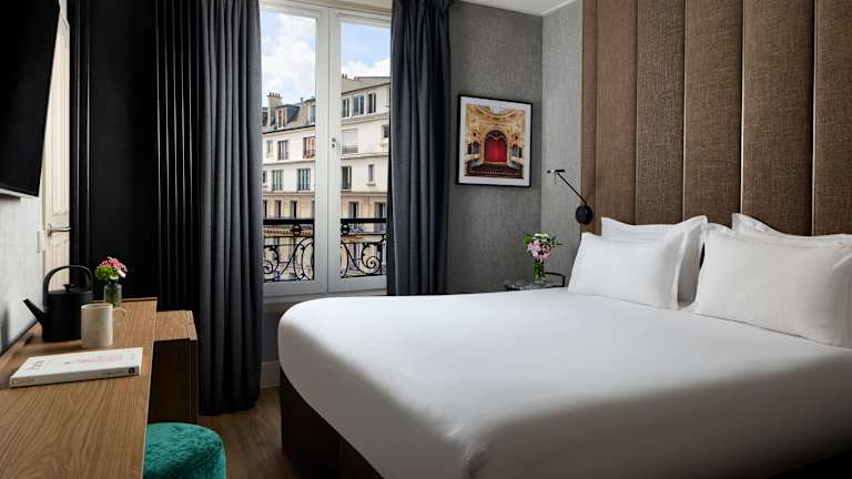 Die Zimmer im NH Paris Opéra Faubourg sind modern und stilvoll eingerichtet. Die Farbgebung in Schokoladenbraun und Creme schafft eine warme und einladende Atmosphäre. Alle Zimmer verfügen über ein eigenes Badezimmer und einen Flachbild-TV. Für zusätzlichen Komfort stehen den Gästen eine Hotelbar sowie gemütliche Lounges zur Verfügung.