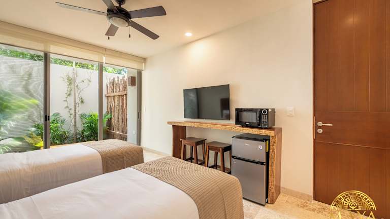 Die Wohneinheiten im Nhoa Tulum Aparthotel verfügen über einen Balkon und sind klimatisiert. Sie sind ausgestattet mit einem Flachbild-TV und einem eigenen Badezimmer, das eine Dusche und einen Haartrockner bietet. In einigen Einheiten befindet sich zudem eine Kitchenette mit Kühlschrank, Minibar und Toaster.