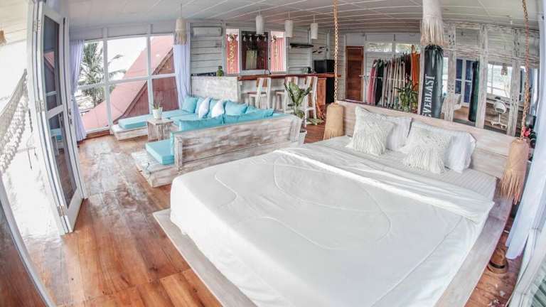 Nias Surf Villa bietet Übernachtungsmöglichkeiten mit kostenlosem WLAN, Klimaanlage und einem Garten. Die Unterkunft zeichnet sich durch eine direkte Strandlage und einen Blick auf die Wellen aus.