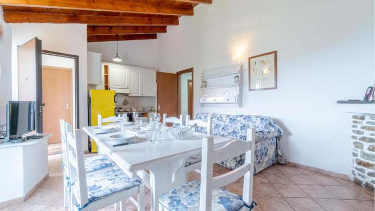 Die Ferienwohnung umfasst ein Schlafzimmer und ein Wohnzimmer, das mit einem TV ausgestattet ist.