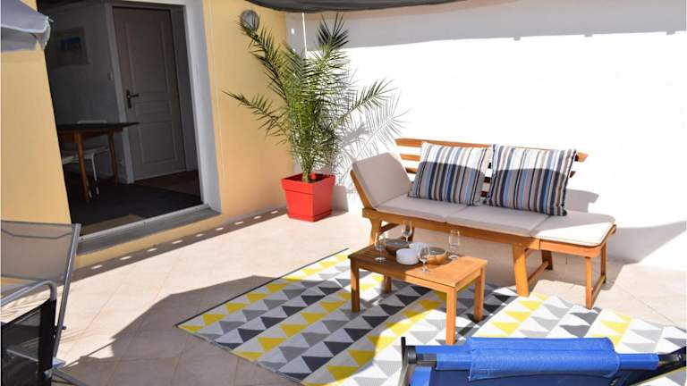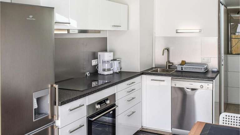 Das Apartment verfügt über ein gemütliches Schlafzimmer, ein Wohnzimmer und eine gut ausgestattete Küche. Die Küche ist mit einem Kühlschrank und einem Geschirrspüler ausgestattet, so dass Sie Ihre eigenen Mahlzeiten zubereiten können. Das Apartment bietet auch eine Terrasse, auf der Sie entspannen und die frische Luft genießen können. Kostenloses WLAN und ein TV sorgen für Unterhaltung und Verbindung zur Außenwelt.