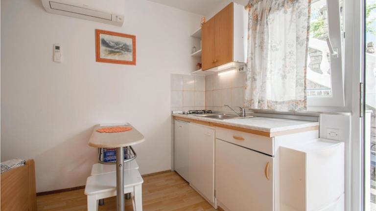 Die Unterkunft verfügt über eine voll ausgestattete Küche mit Kühlschrank und Herdplatte, die eine selbständige Zubereitung von Mahlzeiten ermöglicht. Grillmöglichkeiten sind ebenfalls vorhanden.