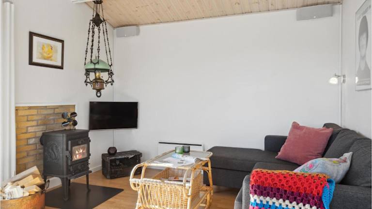 Das Ferienhaus ist ausgestattet mit zwei Schlafzimmern, einem Fernseher, einem Essbereich und einer Küche, die unter anderem einen Kühlschrank umfasst. Das Wohnzimmer ergänzt die Ausstattung und sorgt für zusätzlichen Komfort. Es stehen Gartenmöbel zur Verfügung.