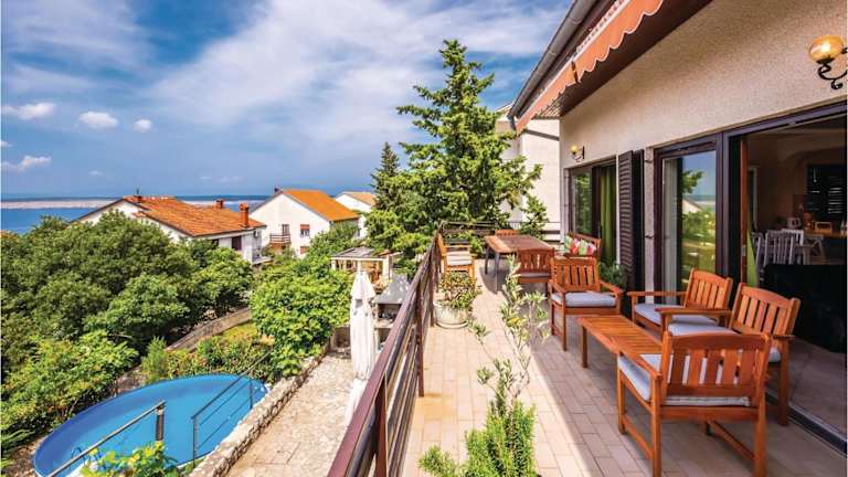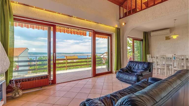 Die Unterkunft befindet sich in Dramalj, 800 m vom Strand Dramalj entfernt und bietet einen Blick auf das Meer. In der Nähe befinden sich mehrere Sehenswürdigkeiten, wie die Burg Trsat (28 km) und das HNK Rijeka Stadium Rujevica (33 km). Der Flughafen Rijeka ist 18 km entfernt.