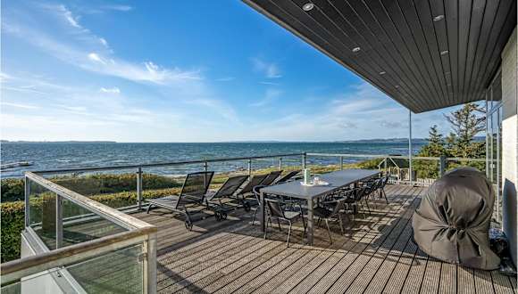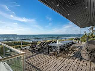 Ebeltoft, nahe dem Strand Lyngsbæk-Femmøller (1,5 km) und Strand Vibæk (2 km) gelegen, mit Blick auf das Meer. Der Flughafen Aarhus befindet sich 13 km entfernt.