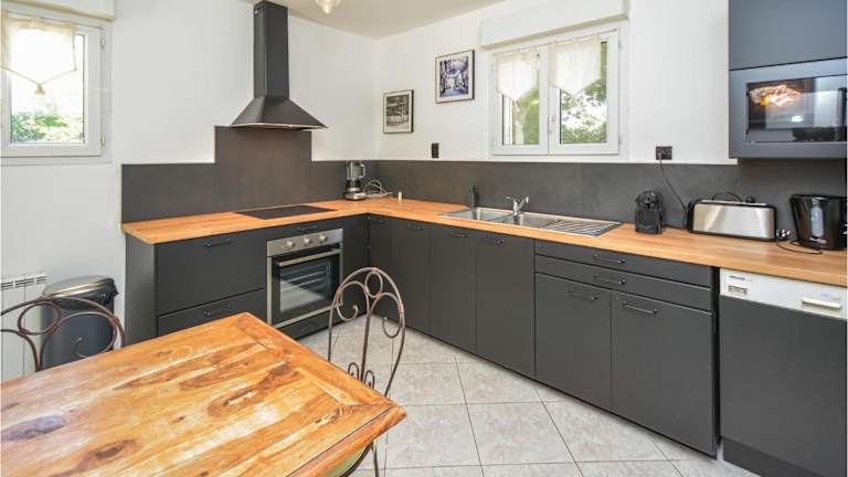 Das Ferienhaus umfasst 4 Schlafzimmer, ein Wohnzimmer und eine voll ausgestattete Küche, die mit einem Kühlschrank und einer Kaffeemaschine ausgestattet ist. Es gibt insgesamt 3 Badezimmer, die jeweils mit einer Dusche und einer Badewanne ausgestattet sind.