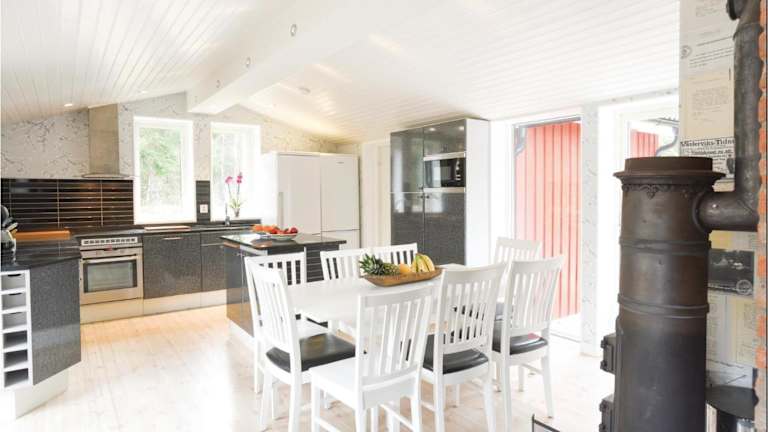 Das Ferienhaus umfasst 5 Schlafzimmer, ein Wohnzimmer und eine voll ausgestattete Küche, die mit einem Kühlschrank und einem Geschirrspüler ausgestattet ist. Zur Unterhaltung stehen ein TV und ein DVD-Player zur Verfügung.