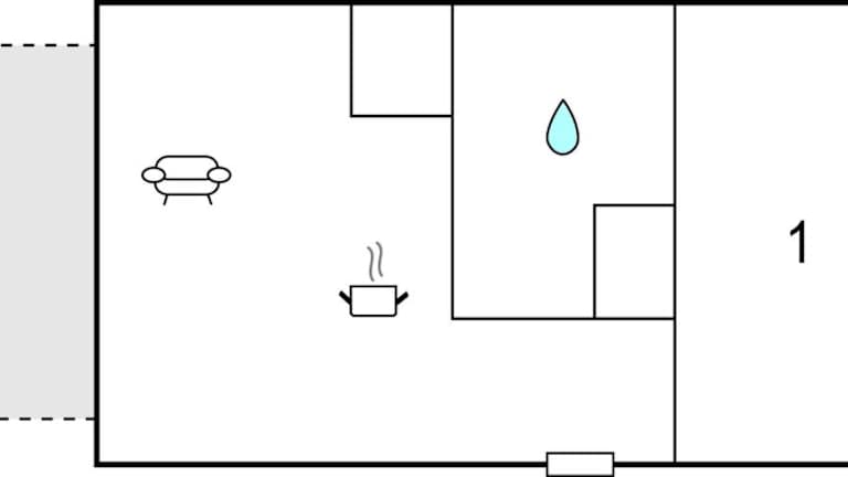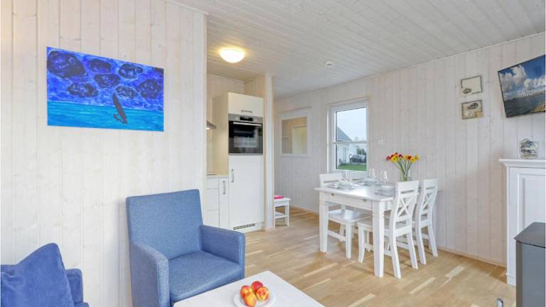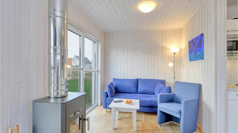 Das Ferienhaus bietet ein Schlafzimmer sowie ein Wohnzimmer mit TV, eine voll ausgestattete Küche mit Kühlschrank und Geschirrspüler und ein Badezimmer mit Dusche.