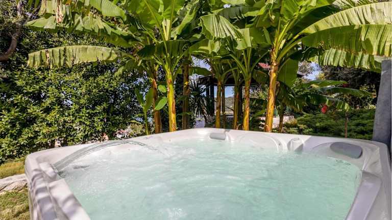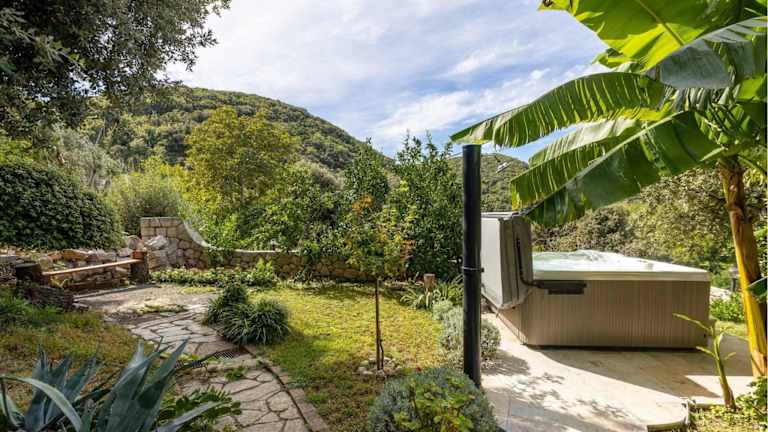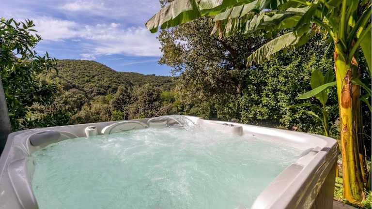 Das Ferienhaus verfügt über zwei Schlafzimmer, ein Wohnzimmer und eine voll ausgestattete Küche mit Kühlschrank und Kaffeemaschine. Das Badezimmer bietet eine Dusche sowie einen Whirlpool. Die Unterkunft ist klimatisiert und bietet einen sicheren Aufenthalt mit Nichtraucherzonen.
