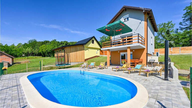Verbringen Sie einen wundervollen Aufenthalt im Stunning Home in Varazdinske Toplice, das mit einer Sauna und kostenfreiem WLAN punktet. Das klimatisierte Ferienhaus bietet 3 Schlafzimmer und eine gut ausgestattete Küche. Genießen Sie die Privatparkplätze und die Nähe zu Sehenswürdigkeiten wie dem Stadion Gradski Varazdin. Der Flughafen Zagreb ist ebenfalls gut erreichbar.
