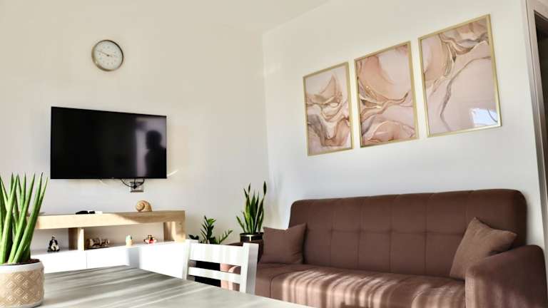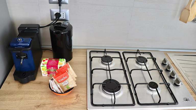 Das Ferienhaus besteht aus einem Schlafzimmer und einem Wohnzimmer, einer voll ausgestatteten Küche mit Kühlschrank und Kaffeemaschine sowie einem Badezimmer mit Dusche. Handtücher und Bettwäsche werden bereitgestellt.