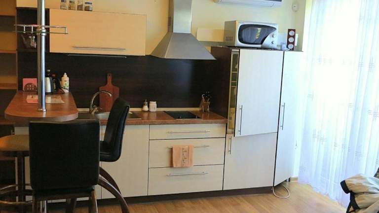 Das klimatisierte Apartment im Nidos Poilsine Studio bietet Ihnen eine komfortable Unterkunft mit allen Annehmlichkeiten, die Sie für einen angenehmen Aufenthalt benötigen. Das Apartment verfügt über einen Flachbild-TV und eine Terrasse, auf der Sie Ihre Mahlzeiten genießen können. Die Küchenzeile ist mit einem Essbereich ausgestattet und das Badezimmer verfügt über eine Dusche, einen Haartrockner und kostenfreie Pflegeprodukte.