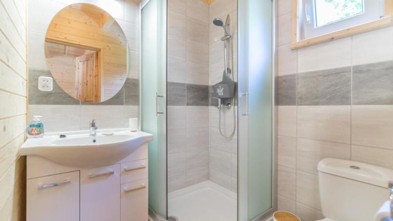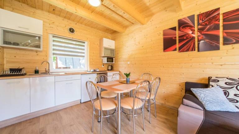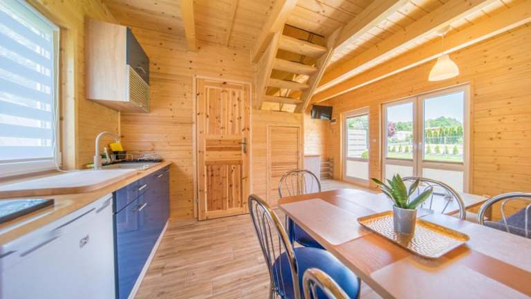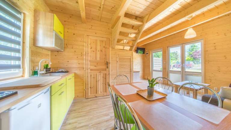 Das Ferienhaus im Niebieski Zakątek verfügt über eine Terrasse, auf der Sie die frische Luft und die schöne Umgebung genießen können. Das Haus ist gemütlich eingerichtet und verfügt über einen komfortablen Sitzbereich sowie einen Flachbild-TV. Die voll ausgestattete Küche bietet alle notwendigen Annehmlichkeiten, um Ihre eigenen Mahlzeiten zuzubereiten, darunter ein Kühlschrank, ein Geschirrspüler, eine Mikrowelle, ein Kochfeld, ein Toaster, eine Kaffeemaschine und ein Wasserkocher. Das private Badezimmer ist mit einer Dusche ausgestattet.