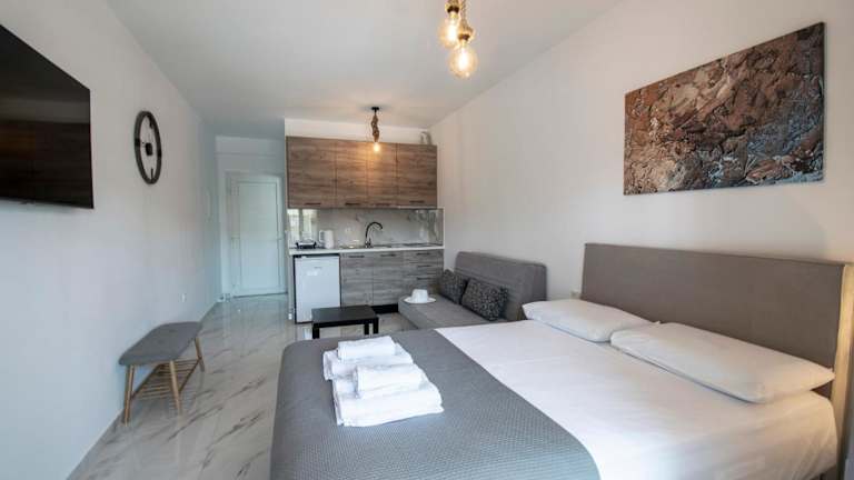 Die Unterkünfte im Maraboo Suites by Travel Pro Services - Nikiti Halkidiki sind komfortabel und modern eingerichtet. Jedes Zimmer verfügt über ein eigenes Badezimmer mit Dusche, Klimaanlage, Flachbild-TV und Kühlschrank. Kostenloses WLAN ist in allen Bereichen verfügbar, so dass Sie immer mit der Welt in Verbindung bleiben können. Genießen Sie den Blick auf den Garten und die Terrasse von Ihrem Zimmer aus und entspannen Sie in ruhiger Atmosphäre.