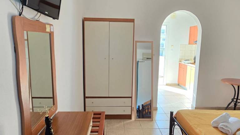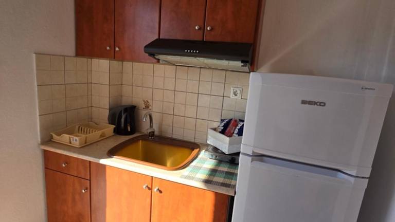 Nikol Thea Studio bietet eine Ferienwohnung mit einer voll ausgestatteten Küchenzeile und einer Terrasse. Die Unterkunft ist klimatisiert und umfasst ein Schlafzimmer sowie ein Badezimmer, das mit einer Badewanne oder Dusche ausgestattet ist.