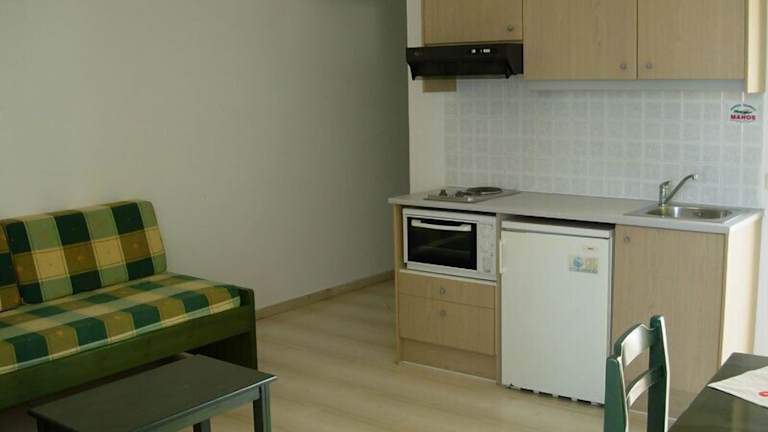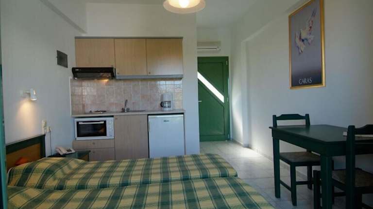 Die Zimmer sind komfortabel ausgestattet und verfügen über eine Klimaanlage, Heizung sowie einen Balkon oder eine Terrasse. Sie sind mit einem Doppelbett und einem Sofabett eingerichtet und bieten eine komplett ausgestattete Kochnische. Ein eigener Safe, TV, WLAN, ein Kühlschrank, eine Mikrowelle und ein Badezimmer mit Dusche und Haartrockner runden die Ausstattung ab.