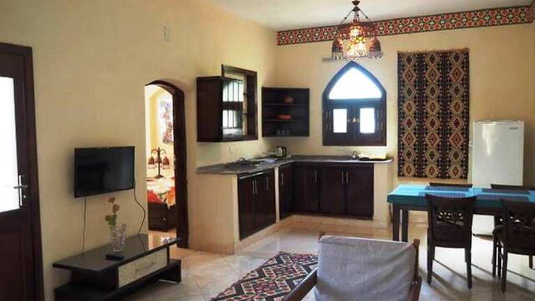 Das Hotel Nile Compound bietet komfortable Wohneinheiten im nubischen Stil, die jeweils über eine eigene Terrasse verfügen. Die Zimmer sind mit Sat-TV, einem Kleiderschrank und einem Schreibtisch ausgestattet. Im eigenen Bad finden Sie eine Dusche und einen Haartrockner. WLAN nutzen Sie in den öffentlichen Bereichen kostenfrei.