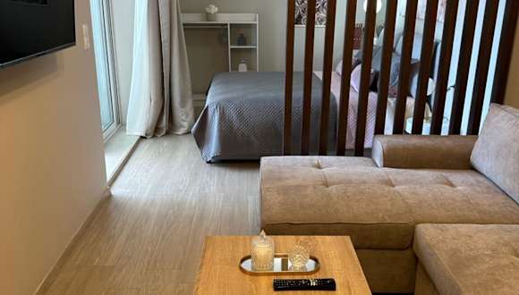 Die Ferienwohnung umfasst 1 Schlafzimmer, ein Wohnzimmer, eine voll ausgestattete Küche mit Kühlschrank und Kaffeemaschine sowie 1 Badezimmer, das mit einer Dusche und einem Haartrockner ausgestattet ist. Handtücher und Bettwäsche sind ebenfalls vorhanden.
