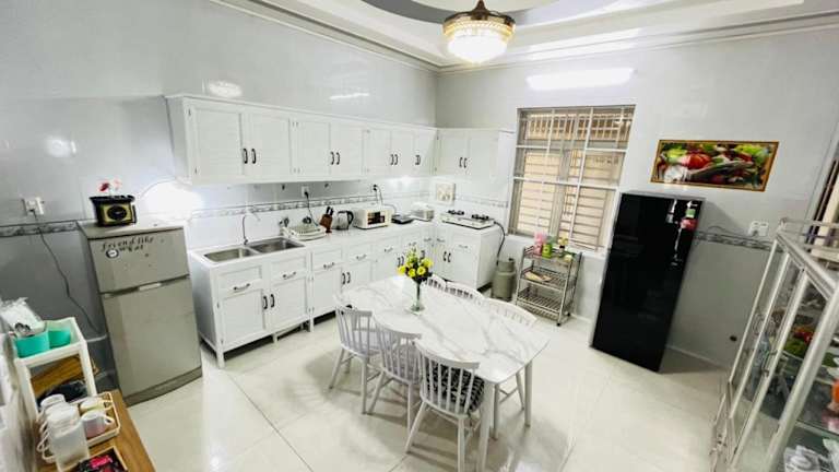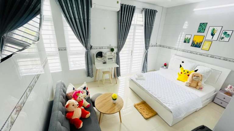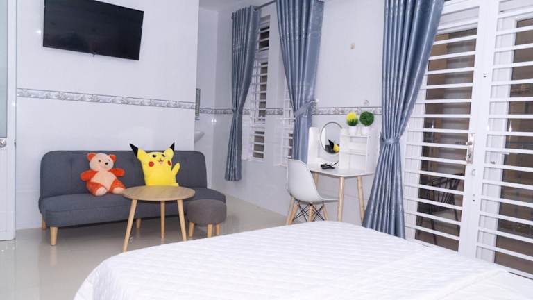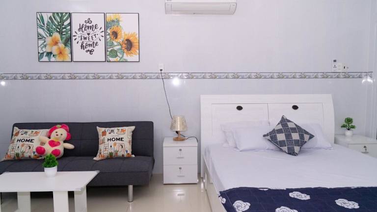 Das Nina Homestay P1, P4 ist eine gemütliche Privatunterkunft in der Region An Giang, die Ihnen einen Balkon mit Stadtblick bietet. Hier können Sie sich in einer entspannten Atmosphäre wohlfühlen und den Komfort kostenloser Privatparkplätze und WLAN genießen. Die klimatisierte Unterkunft verfügt über einen geräumigen Sitzbereich, eine voll ausgestattete Küche und einen Flachbild-TV. Handtücher und Bettwäsche werden gestellt und auf der Terrasse können Sie die frische Luft genießen. Der internationale Flughafen Can Tho liegt nur 51 km entfernt.