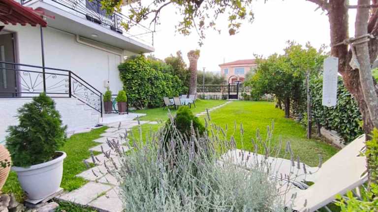 Die Unterkunft befindet sich in Chrani, direkt am Strand und bietet einen Blick auf die Stadt. Die Nähe zu Kalamata, etwa 35 km entfernt, ermöglicht einen einfachen Zugang zu städtischen Einrichtungen und Sehenswürdigkeiten.