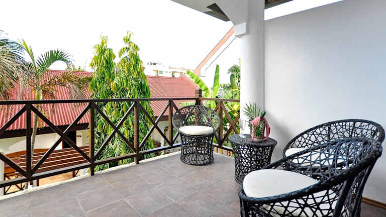 Das Nirvana Beach Resort bietet 16 Zimmer in einem zweistöckigen Hauptgebäude und drei Nebengebäuden. Die Zimmer sind gemütlich eingerichtet und verfügen über einen Wohnbereich, eine Kochnische und einen Balkon. Zur Ausstattung gehören Klimaanlage, Kabel-TV und kostenloses WLAN.