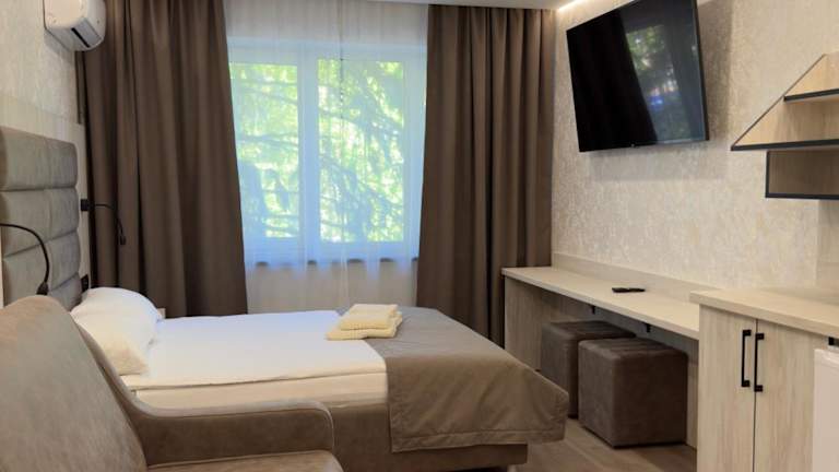 Verbringen Sie einen angenehmen Aufenthalt im Hotel Nirvana in Rivne. Genießen Sie kostenloses WLAN in allen Bereichen und entspannen Sie sich in den komfortablen Zimmern, die mit modernen Annehmlichkeiten wie Klimaanlage, Flachbild-TV und Kühlschrank ausgestattet sind.