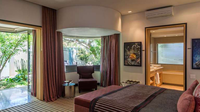 Das Mantis No5 Boutique Art Hotel in Port Elizabeth bietet Paaren ab 16 Jahren einen luxuriösen Aufenthalt in einer ruhigen Umgebung mit Blick auf den Indischen Ozean. Das Hotel besticht durch seine eleganten und modernen Suiten, die jeweils eine eigene Terrasse und Blick auf die angelegten Gärten bieten. Genießen Sie den Außenpool und den Wellnessbereich sowie das einzigartige Ambiente der Champagne Lounge und des Jazz Rooms. Das Hotel liegt nur wenige Minuten vom Flughafen Port Elizabeth und nur 100 m vom Indischen Ozean entfernt.