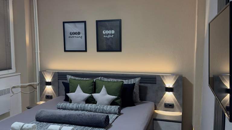 Das NOA Luxury Apartment in Bitola ist eine luxuriöse Unterkunft mit einem wunderschönen Garten, einer Terrasse und einer Bar. Hier können Sie sich entspannen, kostenfreies WLAN nutzen und den Blick auf die Stadt genießen. Die Privatparkplätze stehen Ihnen kostenlos zur Verfügung. In der Umgebung gibt es viele Aktivitäten wie Skifahren und Radfahren. Das klimatisierte Apartment verfügt über ein Schlafzimmer, ein Wohnzimmer, eine voll ausgestattete Küche mit Kühlschrank und Kaffeemaschine sowie ein Badezimmer mit Dusche und Whirlpool. Handtücher und Bettwäsche werden gestellt. Das freundliche Personal an der Rezeption spricht mehrere Sprachen und gibt Ihnen gerne Tipps zur Umgebung. Es gibt auch ein Casino im Apartment. Der nächstgelegene Flughafen ist der Flughafen Ohrid, der 79 km entfernt liegt. Ein kostenpflichtiger Flughafentransfer wird angeboten.