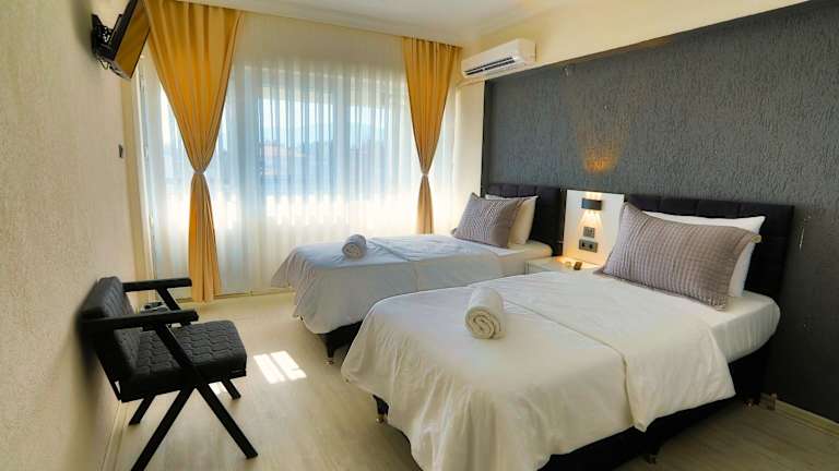 Die Zimmer im Ephesus Nobel Otel sind mit einem Kleiderschrank, einem Schreibtisch und einem Flachbild-TV ausgestattet. Einige Wohneinheiten besitzen zudem einen Balkon. Zu den Annehmlichkeiten zählen auch Bettwäsche und Handtücher.