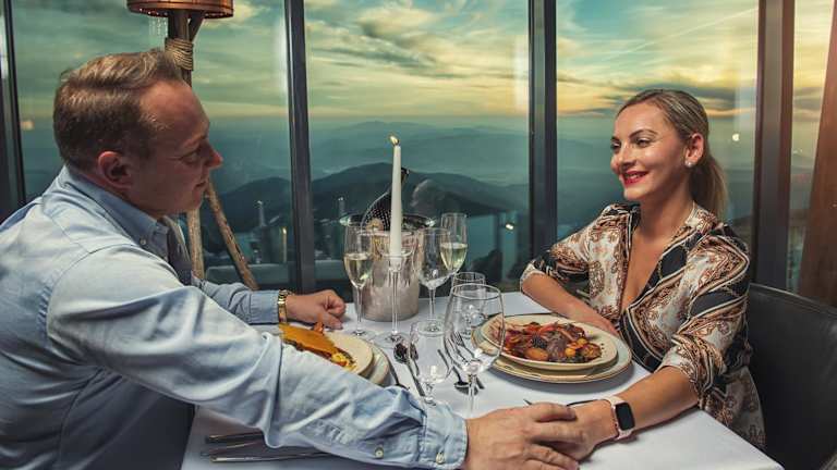 Im Restaurant des Hotels können traditionelle und internationale Gerichte genossen werden. Die große Terrasse ermöglicht es, die Mahlzeiten mit einem Blick auf die Berglandschaft zu verbinden. Auf Wunsch sind auch spezielle Ernährungsbedürfnisse berücksichtigbar.