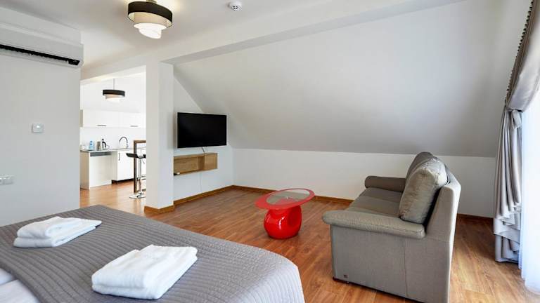 Das Nocleg EM bietet keine eigenen Restaurants, aber in der Umgebung finden Sie eine Vielzahl von gastronomischen Einrichtungen, in denen Sie lokale Spezialitäten genießen können. Entdecken Sie die kulinarischen Köstlichkeiten der Region und lassen Sie sich von den verschiedenen Restaurants verwöhnen.
