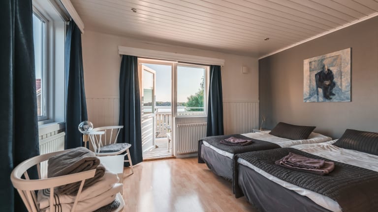 Die modernen und hellen Zimmer im Nösund Havshotell bieten den Gästen einen komfortablen Rückzugsort. Jedes Zimmer verfügt über ein eigenes Badezimmer und einige Zimmer bieten einen möblierten Balkon oder eine Terrasse mit Meerblick. Die Zimmer sind geschmackvoll eingerichtet und laden zum Entspannen ein.
