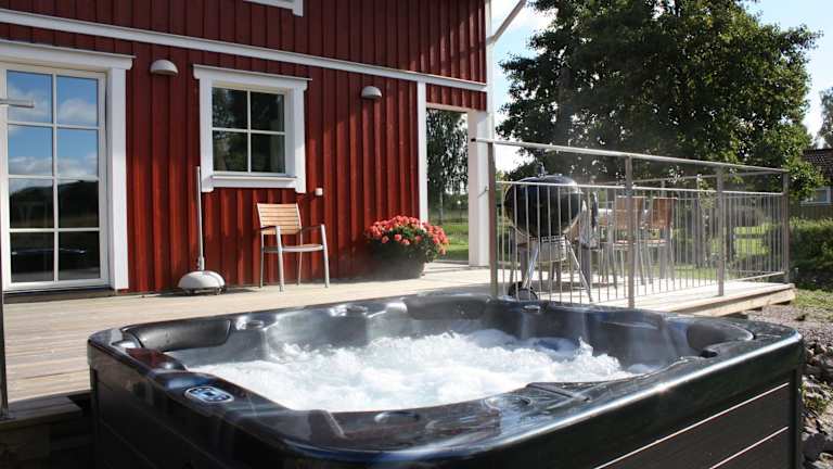 Das Nolgårdens Turistboende ist eine charmante Villa mit Balkon und einem wunderschönen Blick auf den Garten. Hier können Sie Ihren Aufenthalt in einer ruhigen und erholsamen Umgebung genießen. Die Villa bietet alle Annehmlichkeiten, die Sie für einen komfortablen Aufenthalt benötigen, darunter eine gut ausgestattete Küche, eine Waschmaschine und ein modernes Badezimmer. Entspannen Sie sich in der Sauna oder im Whirlpool und genießen Sie die Terrasse. Die Lage der Villa ist ideal für Skifahrer und auch der Bahnhof Skövde ist nicht weit entfernt.