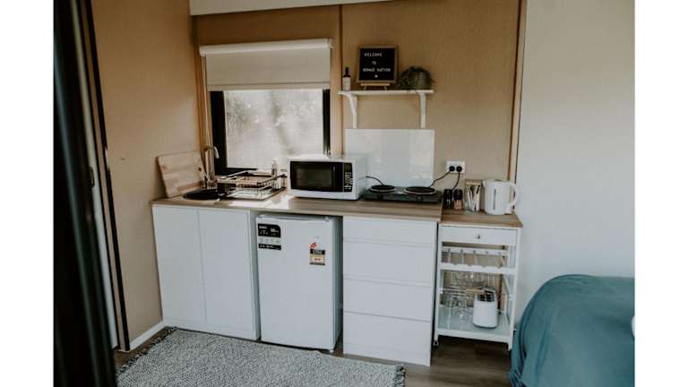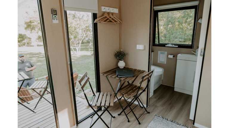 Das klimatisierte Ferienhaus im Nomad Nation bietet Ihnen ein komfortables und gemütliches Ambiente während Ihres Aufenthalts. Mit einem separaten Schlafzimmer, einer voll ausgestatteten Küche mit Kühlschrank und Mikrowelle sowie einem Badezimmer haben Sie alles, was Sie für einen angenehmen Aufenthalt benötigen. Handtücher und Bettwäsche werden gestellt, um Ihnen zusätzlichen Komfort zu bieten.