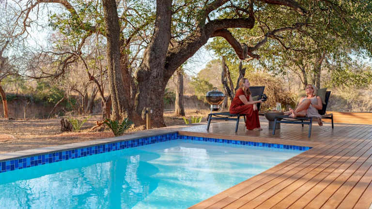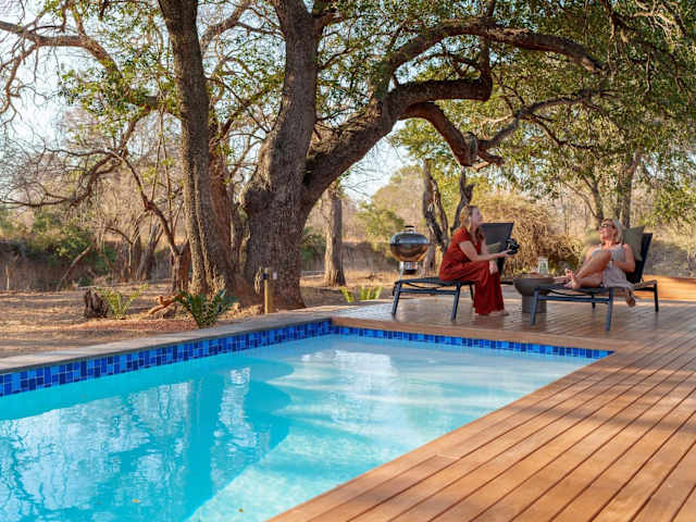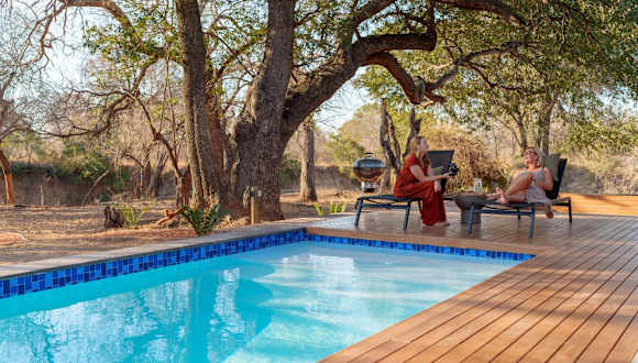 Nomads Den Safari Villas - Heated Pools and Riverbed views bietet Übernachtungsmöglichkeiten mit einer Terrasse, einer Bar sowie einem Conciergeservice. Die Unterkunft ist darauf ausgelegt, einen komfortablen Aufenthalt zu gewährleisten.