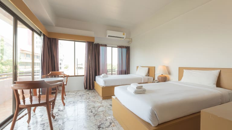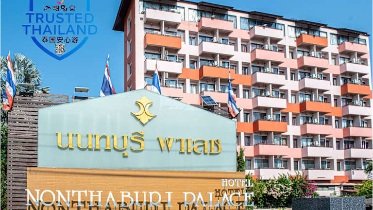 Das Nonthaburi Palace Hotel in der Provinz Nonthaburi bietet Ihnen einen angenehmen Aufenthalt in der Nähe von Bangkok. Genießen Sie die komfortablen Zimmer mit kostenfreiem WLAN und die Möglichkeit, Ihr Fahrzeug kostenlos zu parken. Das Hotel bietet auch einen Flughafentransfer und eine Autovermietung. Freuen Sie sich auf das Restaurant und den Zimmerservice, der Ihnen internationale Gerichte auf Ihr Zimmer bringt.