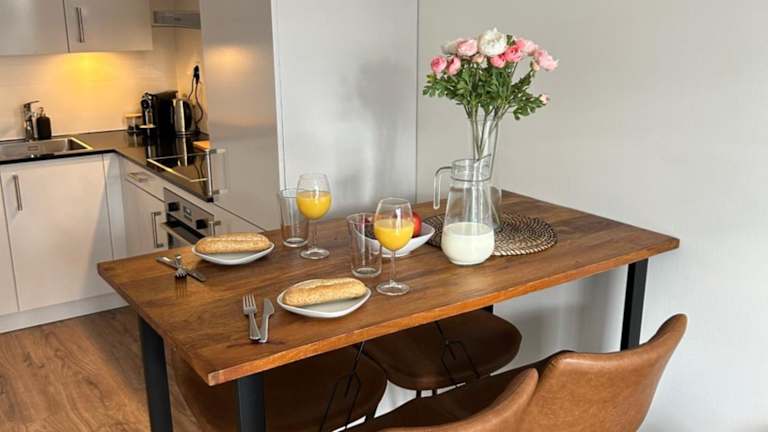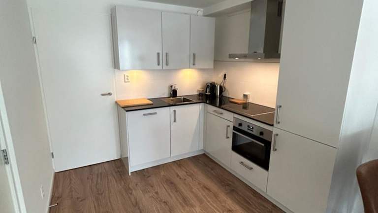 Jede Wohneinheit ist komplett ausgestattet und verfügt über eine Waschmaschine, einen TV, ein Schlafsofa und einen Kleiderschrank. In der Küche stehen ein Kühlschrank, ein Geschirrspüler, ein Ofen und eine Kaffeemaschine zur Verfügung.