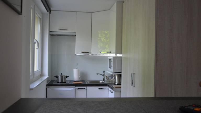 Die Wohneinheiten sind mit Parkettböden ausgestattet und verfügen über eine voll ausgestattete Küchenzeile mit Kühlschrank, Mikrowelle, Herdplatte und Wasserkocher. Darüber hinaus bieten die Zimmer einen Essbereich, einen Flachbild-TV mit Satellitenkanälen sowie ein eigenes Badezimmer mit Dusche und Haartrockner.