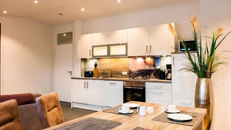 Die Ferienwohnung umfasst 2 Schlafzimmer, ein Badezimmer mit Dusche und eine gut ausgestattete Küchenzeile, die mit einem Kühlschrank und einem Geschirrspüler ausgestattet ist. Zudem ist ein TV vorhanden.