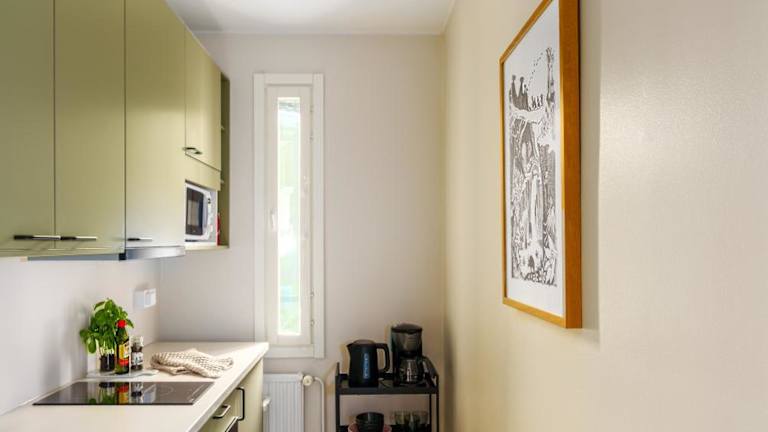 Die Ferienwohnung umfasst ein Schlafzimmer, ein Wohnzimmer und eine voll ausgestattete Küche mit Kühlschrank und Kaffeemaschine. Des Weiteren steht ein Badezimmer mit Dusche und kostenlosen Pflegeprodukten zur Verfügung. Handtücher und Bettwäsche werden bereitgestellt.