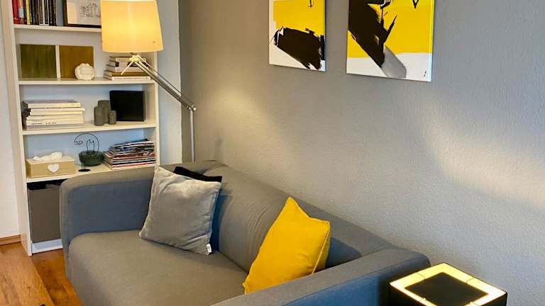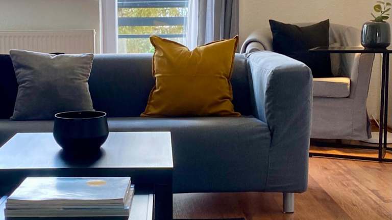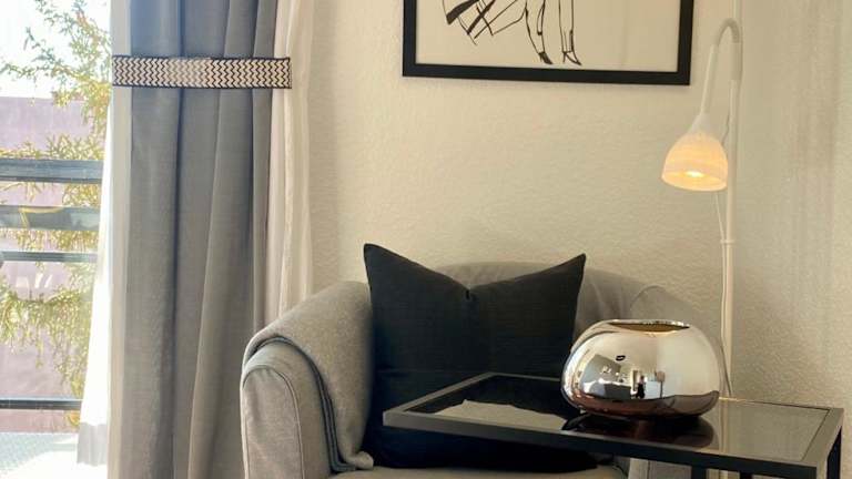 Die Ferienwohnung beinhaltet ein Schlafzimmer und ein Wohnzimmer. Sie ist mit einer voll ausgestatteten Küche ausgestattet, die unter anderem über einen Kühlschrank und eine Kaffeemaschine verfügt. Das Badezimmer ist mit einer Dusche und einem Haartrockner ausgestattet. Handtücher und Bettwäsche werden bereitgestellt. Die Unterkunft verfügt darüber hinaus über Klimaanlage und Nichtraucherzimmer.