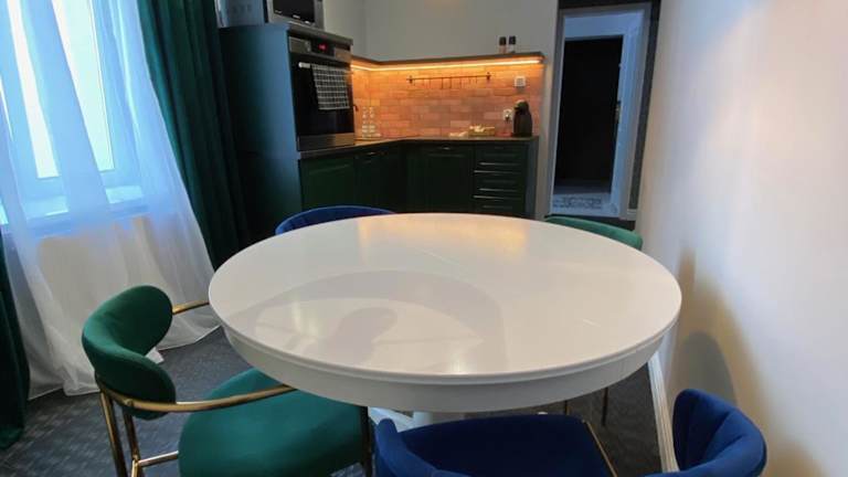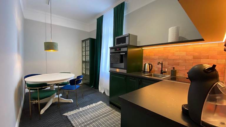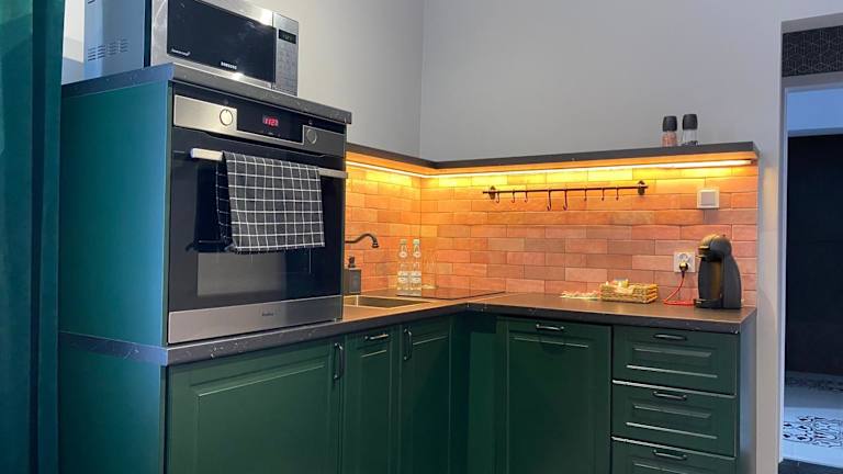 Die Wohneinheiten sind mit einer voll ausgestatteten Küche ausgestattet, die einen Kühlschrank, Ofen, Mikrowelle, Kaffeemaschine und Wasserkocher beinhaltet. Ein Esstisch ist ebenfalls vorhanden, um Mahlzeiten bequem einzunehmen.
