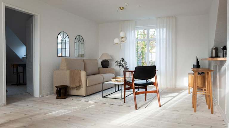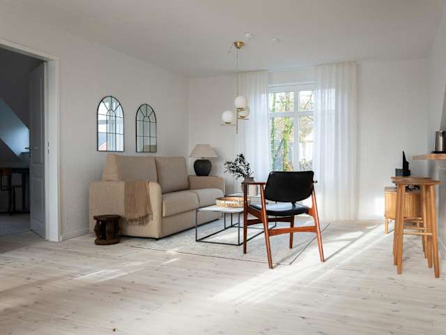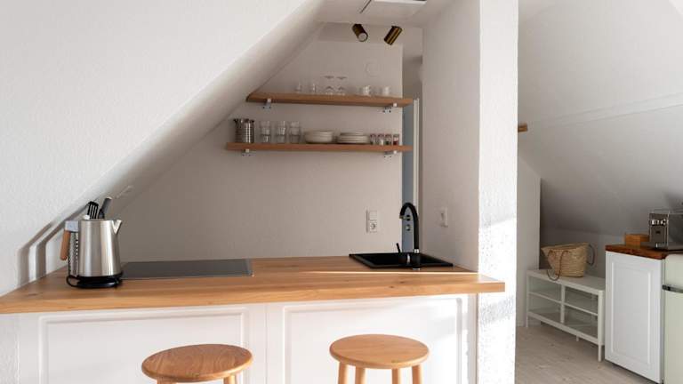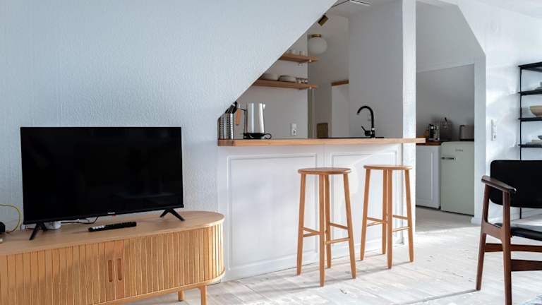 Die Ferienwohnung besteht aus einem Schlafzimmer, einem Wohnzimmer und einer voll ausgestatteten Küche, die mit einem Kühlschrank und einer Kaffeemaschine ausgestattet ist. Zudem gibt es ein Badezimmer mit Dusche und kostenlosen Pflegeprodukten. Handtücher und Bettwäsche werden zur Verfügung gestellt.