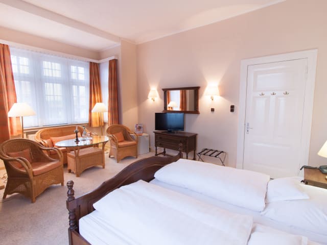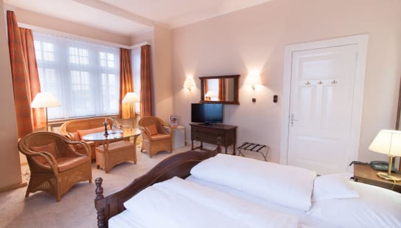 Auf dem Zimmer finden Sie ein Badezimmer. Im Bad finden die Hausgäste eine Badewanne oder Dusche und einen Haartrockner vor. Eine gemütliche Sofaecke zählt zur Ausstattung. Zur Zimmereinrichtung zählen eine Minibar, ein Safe und ein Schreibtisch. Zum standardmäßigen Zimmerinventar zählt eine Waschmaschine. Darüber hinaus sind ein Telefon, ein Radio sowie ein Fernseher vorhanden. Die Hotelführung stellt Ihnen zur Begrüßung ein kostenloses Mineralwasser bereit. Auf Anfrage sind ebenso behindertenfreundliche Zimmer erhältlich.