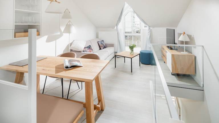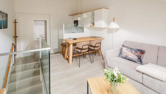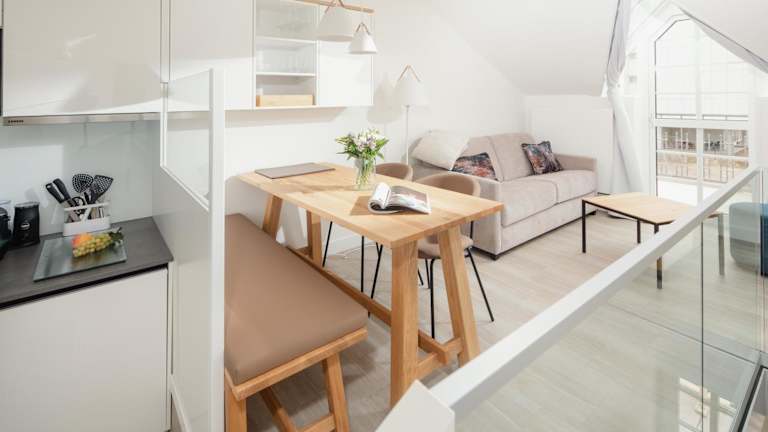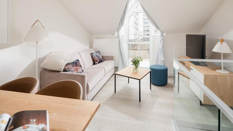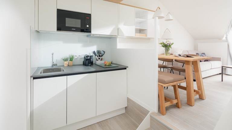 Die Ferienwohnung umfasst 1 Schlafzimmer und ist mit einer Küchenzeile, Kühlschrank, Geschirrspüler, Flachbild-TV, Sitzbereich und einem Badezimmer mit Dusche ausgestattet. Handtücher und Bettwäsche können gegen Aufpreis bereitgestellt werden. Die Zimmer sind schallisoliert und Nichtraucherzimmer. Die Ausstattung umfasst auch ein Babybett, Sicherheitsmerkmale wie Rauchmelder und Feuerlöscher sowie Gelderange von Bettwäsche und Handtüchern, die nach behördlichen Richtlinien gewaschen werden.