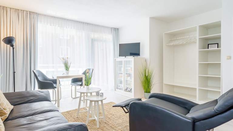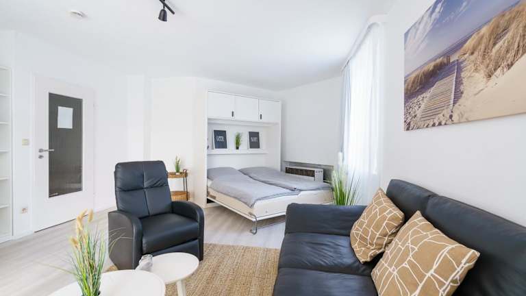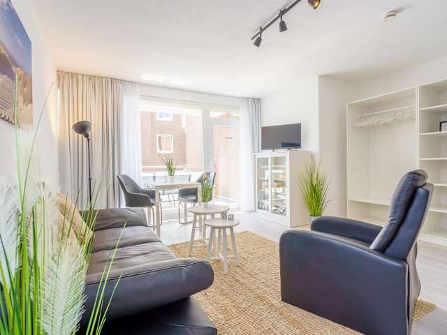Die Ferienwohnung besteht aus einem Schlafzimmer, einem Badezimmer mit Dusche, einem Sitzbereich und bietet einen Flachbild-TV. Handtücher und Bettwäsche werden bereitgestellt.