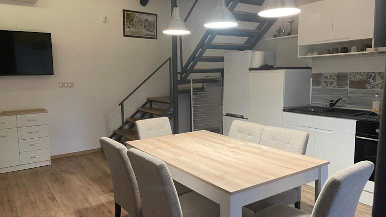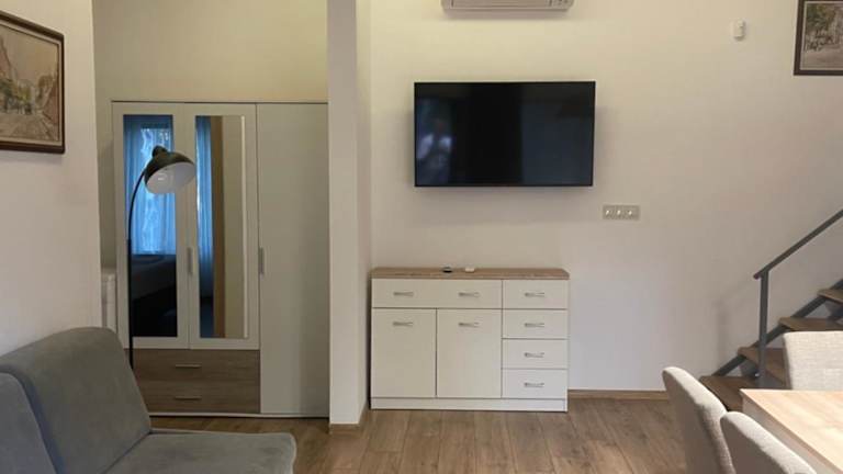 Das klimatisierte Apartment bietet 2 Schlafzimmer, einen gemütlichen Wohnbereich und eine gut ausgestattete Küche mit einem Kühlschrank. Ein Flachbild-Kabel-TV sorgt für Unterhaltung und der Essbereich bietet genügend Platz für Mahlzeiten. Das Apartment ist geräumig und komfortabel eingerichtet, um Ihren Aufenthalt so angenehm wie möglich zu gestalten.